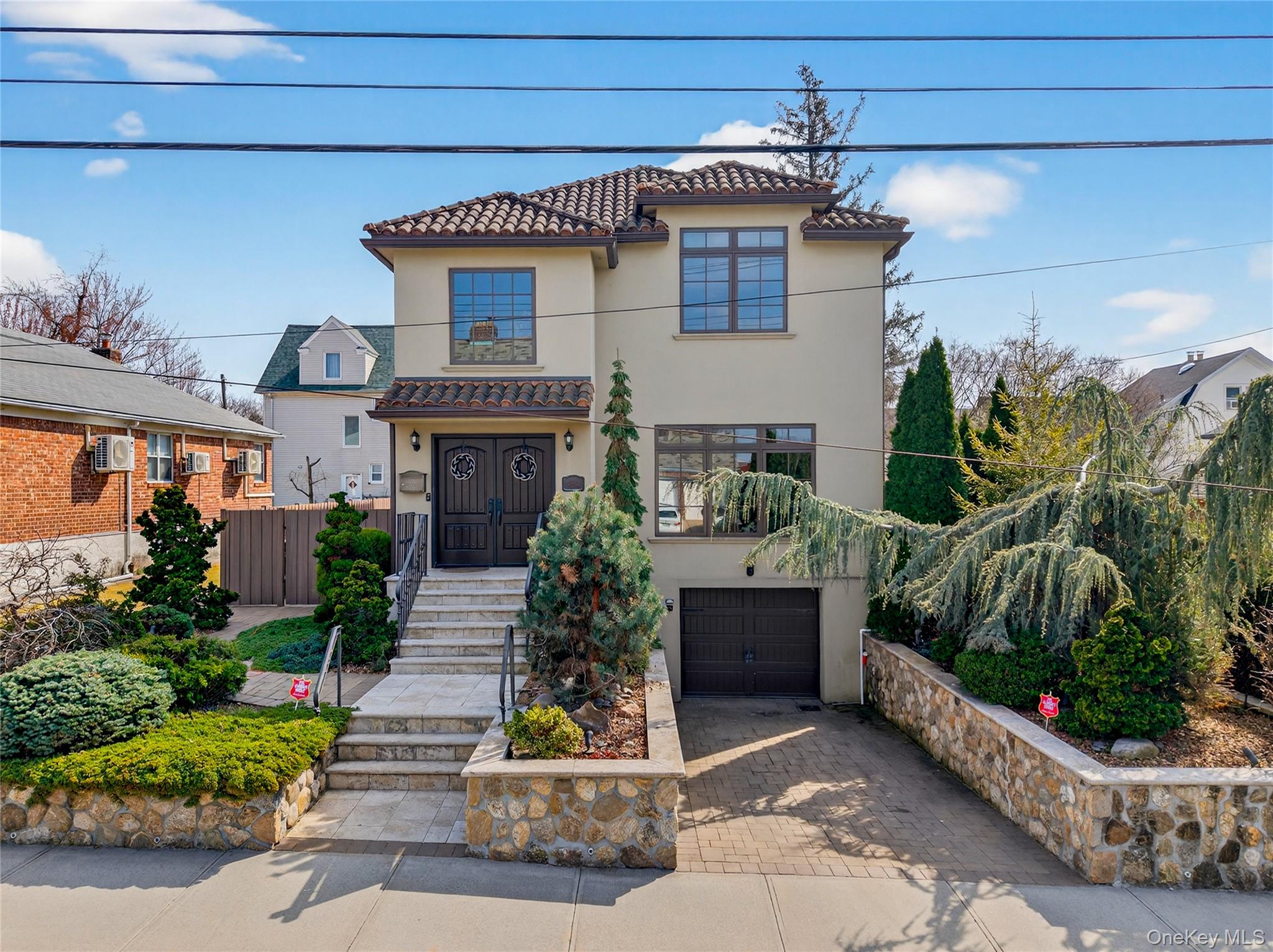 Welcome to this exquisite Spanish-style villa set on a 5,000 sq ft lot, offering 3 bedrooms and 4 bathrooms, complete with an attached garage and private driveway. A grand foyer welcomes you into sun-drenched interiors, where the open-concept living room seamlessly flows into an elegant formal dining area, centered around a sophisticated gas fireplace—perfect for refined entertaining. Crafted with exceptional attention to detail, this home features soundproof windows, insulated walls, radiant heated flooring, central AC/heating, and additional split systems for year-round comfort. The exterior showcases timeless terracotta roof tiles and beautifully landscaped grounds, creating striking curb appeal. The custom chef’s kitchen is a true showpiece, outfitted with top-of-the-line appliances, a stunning marble center island, and a distinctive copper sink. French doors open to a private backyard oasis featuring elegant pavers, lush greenery, a fully equipped summer kitchen, a charming pergola with ambient string lighting, and a custom-built fire pit—perfect for elevated outdoor living. The property is fully fenced, offering enhanced privacy. Upstairs, the luxurious primary suite features custom his-and-hers California walk-in closets and a spa-inspired bathroom with a double vanity. Two additional spacious bedrooms and a beautifully designed bathroom with a jacuzzi tub complete the level. Ideally located just one block from Northern Blvd for effortless commuting. See it to believe it—a rare opportunity to own.